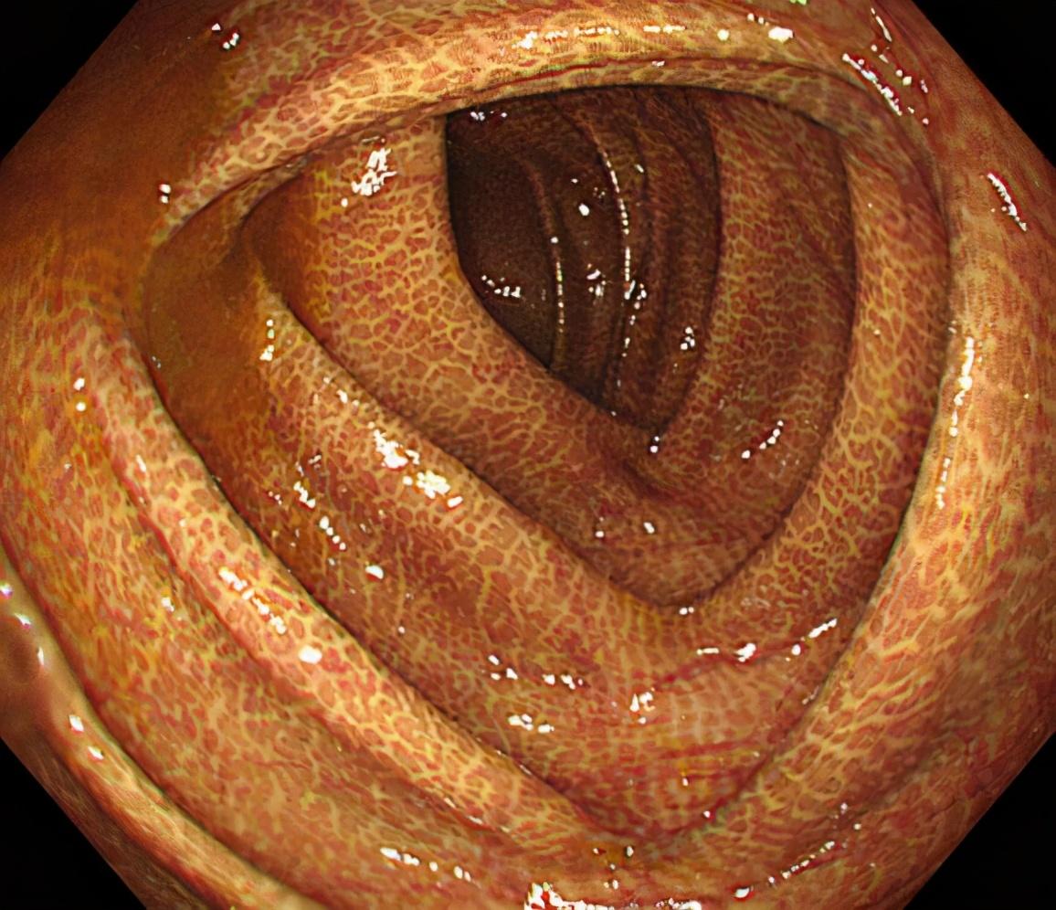 Ⅲ度深黑褐色,在深黑褐色黏膜间有细小乳白色线条状或斑点状黏膜,黏膜下血管看不见,此种表现多见于全结肠型。从病变发生的部位来看,如病变局限则多见于近段结肠,严重时可累及全结肠。